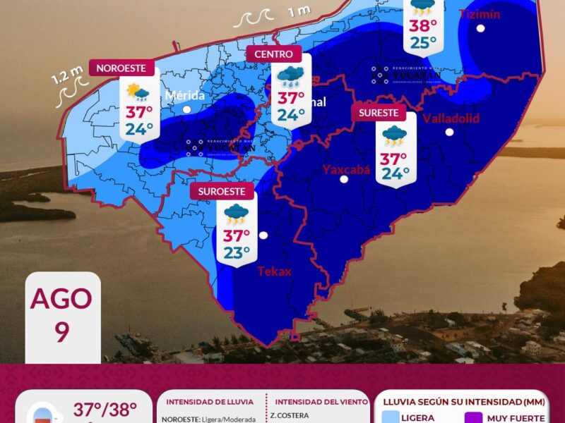 Publicado enYucatánPronóstico Yucatán: calor y lluvias por 24 Horas Yucatán agosto 9, 2025agosto 9, 2025