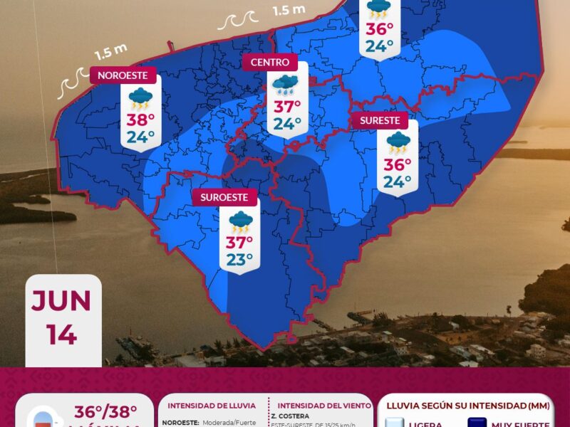 Publicado enYucatánPronóstico Yucatán: presencia de lluvia moderada y fuerte por 24 Horas Yucatán junio 14, 2025junio 14, 2025