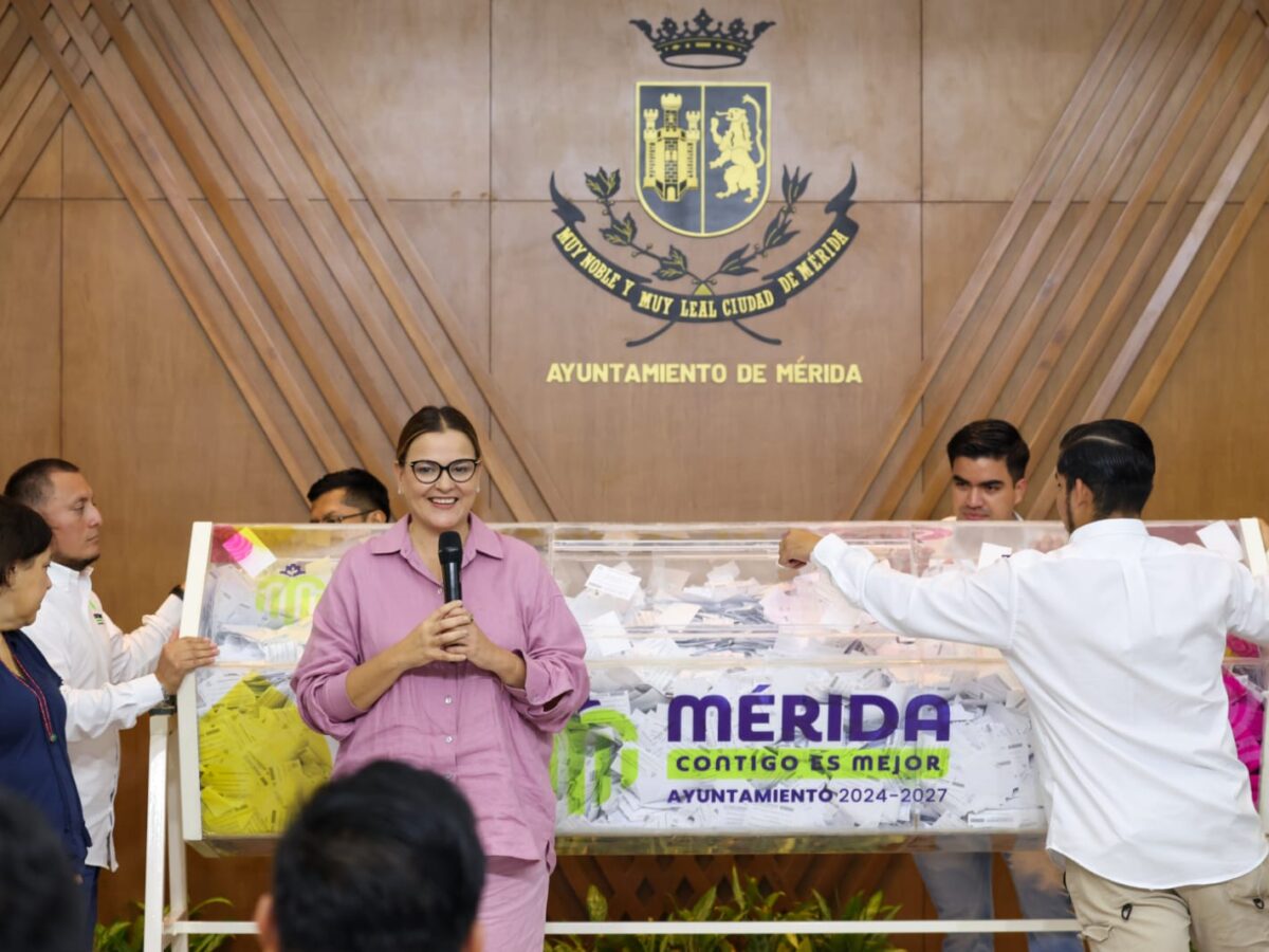 La presidenta municipal de Mérida, Cecilia Patrón Laviada, encabezó este lunes el sorteo Gana Mérida ganas tú.