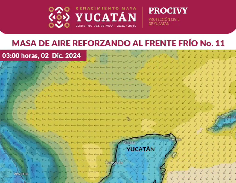 Protección Civil de Yucatán informó a la población sobre las condiciones climáticas que se presentarán este viernes debido al paso del Frente Frío No. 15. Este fenómeno, de débil intensidad, traerá lluvias ligeras y temperaturas frescas en diversas zonas del estado. Lluvias por la mañana y chubascos por la tarde Se espera que durante la […]