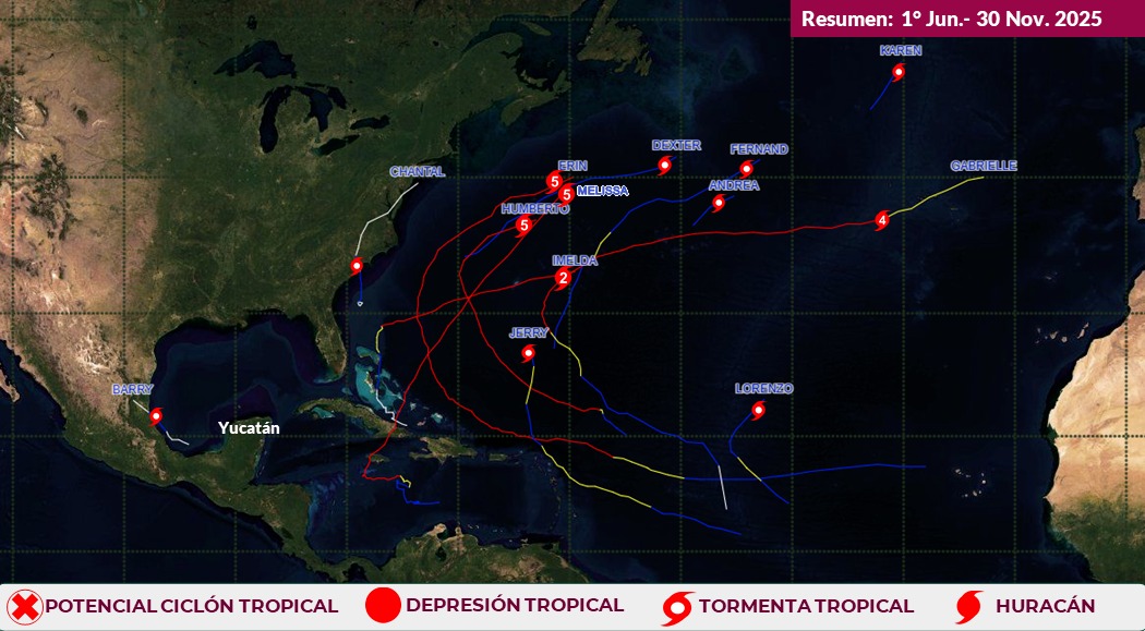 ¡Únete a nuestro canal de WhatsApp! La Coordinación Estatal de Protección Civil (Procivy) informó la conclusión oficial de la temporada de ciclones tropicales 2025 en el océano Atlántico, periodo que abarcó del 1 de junio al 30 de noviembre. El titular de la dependencia, Hernán Hernández Rodríguez, detalló que durante estos seis meses se formaron 13 sistemas tropicales con nombre, cifra […]
