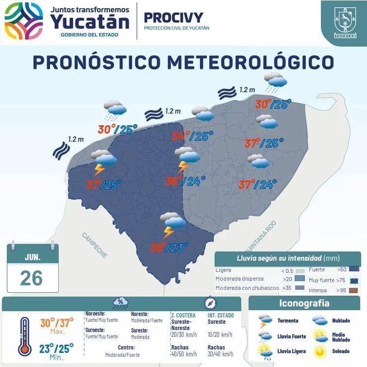 Pronóstico del tiempo para hoy: Lluvias en varias regiones del Yucatán