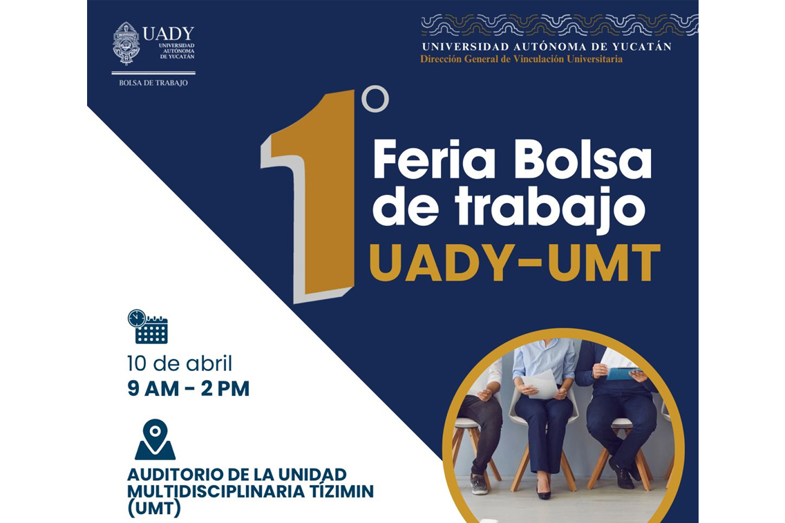 La Universidad Autónoma de Yucatán (UADY) a través de la Dirección General de Vinculación y el servicio de Bolsa de Trabajo invitan a estudiantes y egresados de la Unidad Multidisciplinaria Tizimín (UMT) a participar en su primera Feria Bolsa de Trabajo UADY. La responsable institucional del evento, Mildred Cruz Díaz, detalló que esta feria se […]