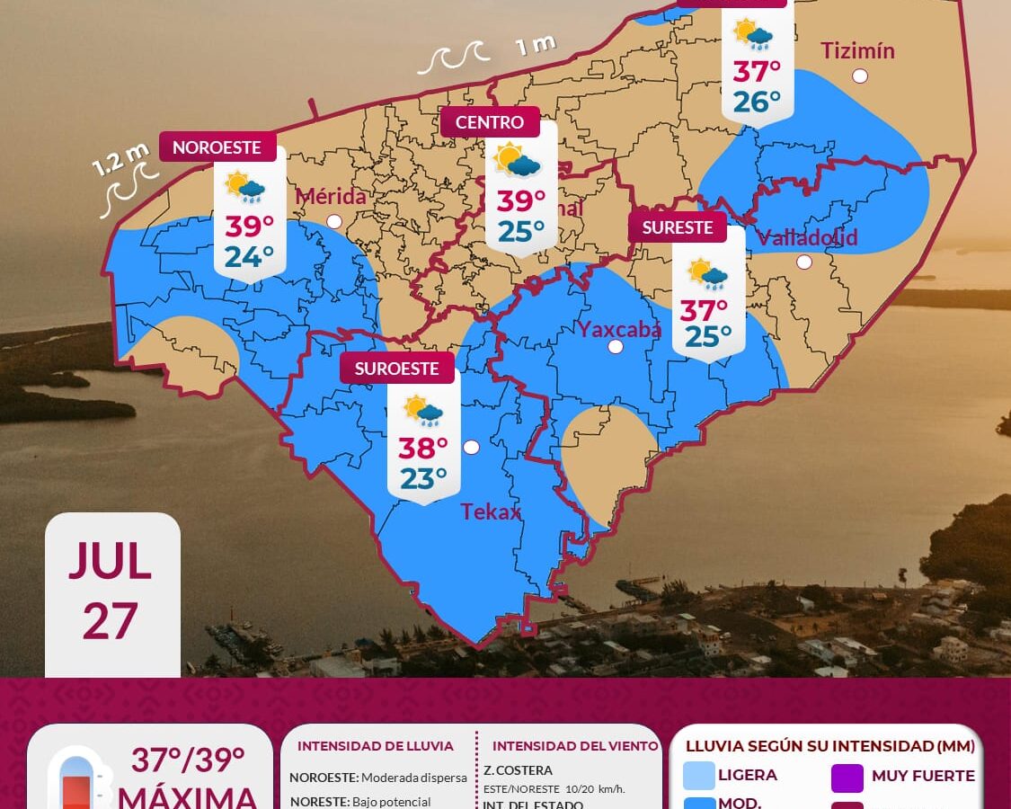 Pronóstico del clima en Yucatán para este domingo 27 de julio